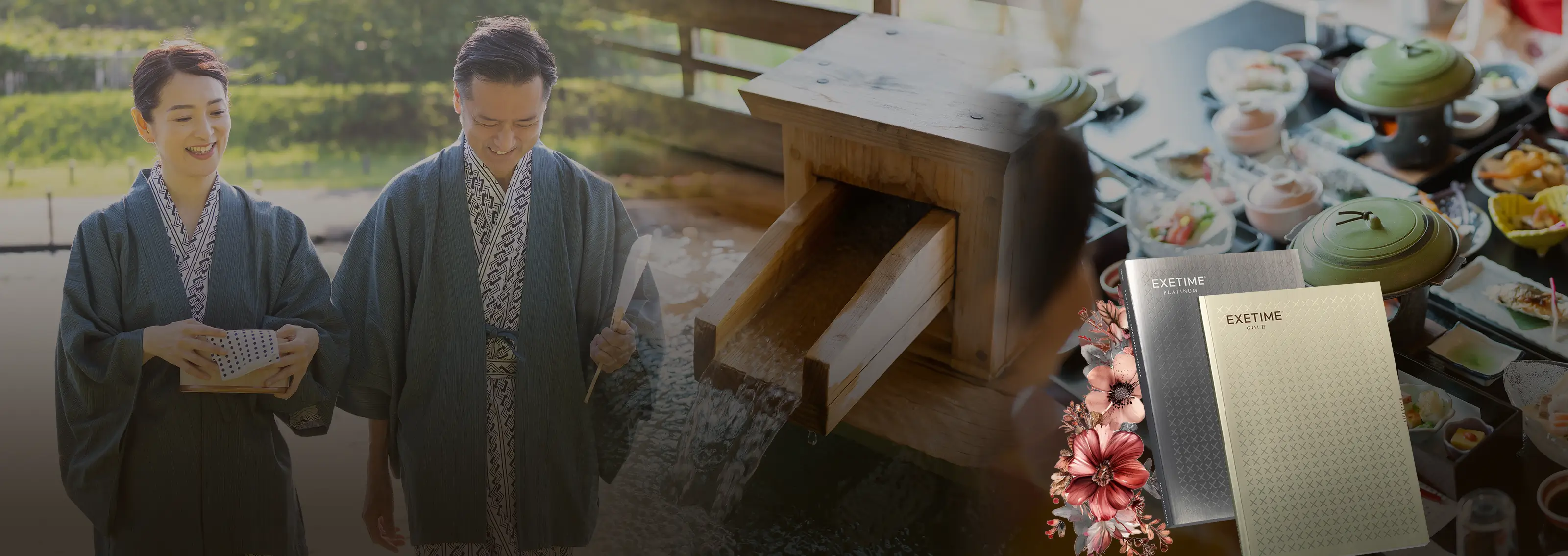 1泊2食付の温泉や人気レストランでの特別ディナーなど、贅沢なラインナップのEXETIME。