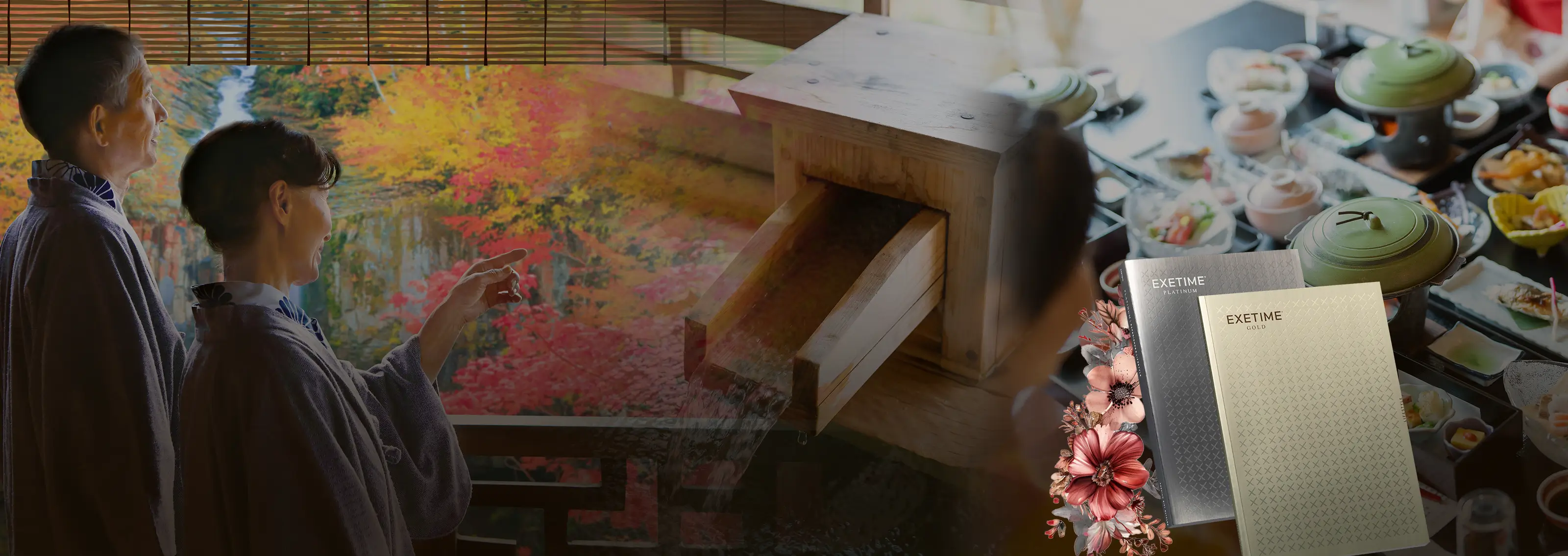 1泊2食付の温泉や人気レストランでの特別ディナーなど、贅沢なラインナップのEXETIME。