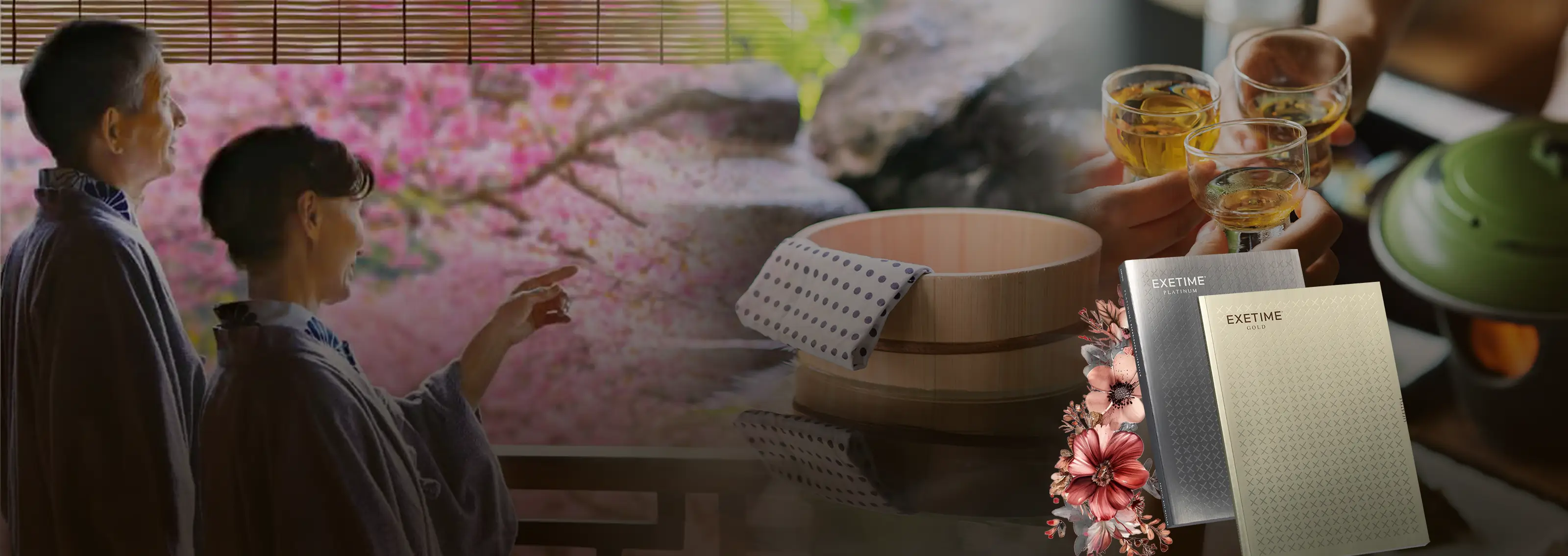 1泊2食付の温泉や人気レストランでの特別ディナーなど、贅沢なラインナップのEXETIME。